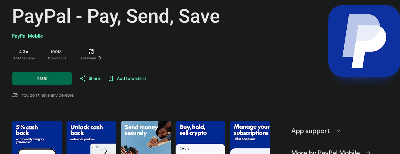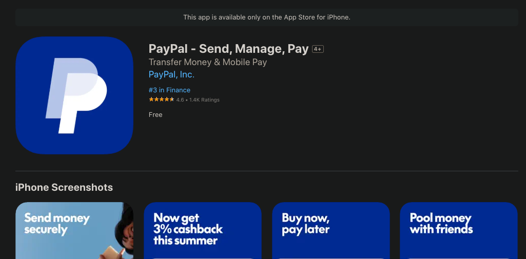 Apple Store Link: https://apps.apple.com/us/app/paypal-pay-send-save/id283646709