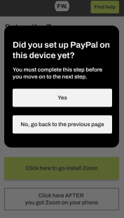 4. Go back to your checklist once this is complete and select "Yes" when asked "Did you set up PayPal on this device yet?"