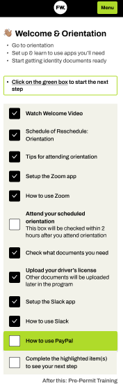 1. Click the “How to use PayPal” checklist item in your Student Portal